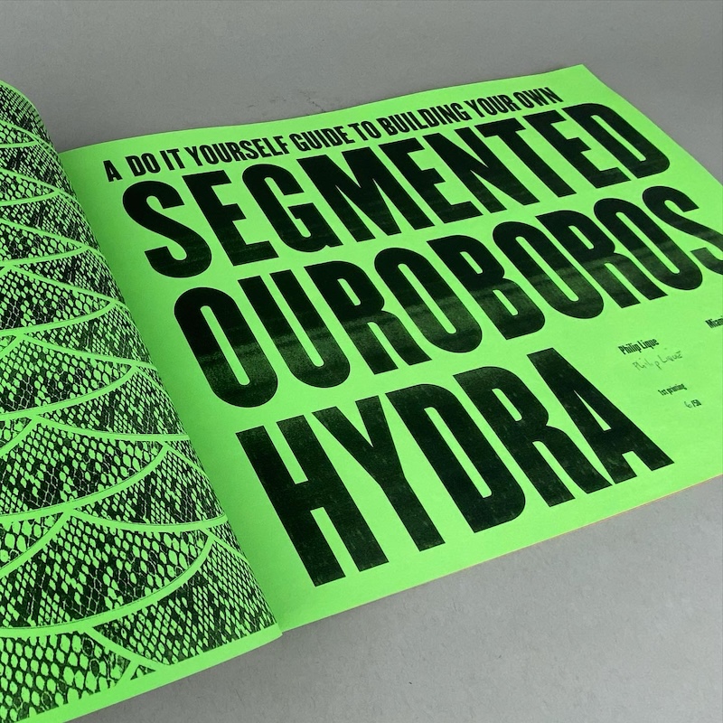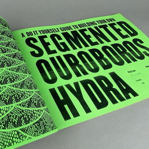 This book is a prompt for individual readers and group projects. Its pages contain a series of serpent heads and bodies. They are the component parts of an exercise in spatial arrangement, and construction of a visual metaphor.